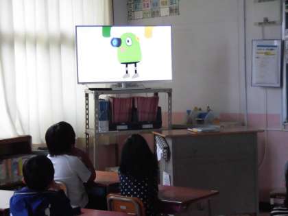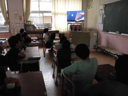 日光を鏡ではね返したり、虫めがねで集めたりして光のせいしつについて学ぶ単元です。前の時間、天気が良かったので、鏡を持って壁に向かって日光をはねかえしました。今日は雨で太陽が出ていなかったので、ビデオで「光のせいしつ」を学習しました。学校ではできないような実験もあったので、