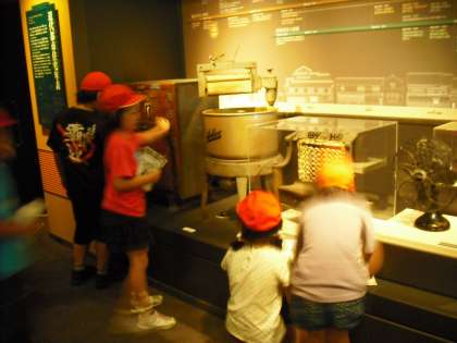 今昔館では、昔に使われていた道具を見たり、実際に手に取って見たり…。