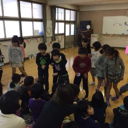 2年生がせいかつの学習で取り組んでいる、おもちゃづくり。今日はそのおもちゃを1年生に体験させてくれました。名付けて「おもちゃまつり」です。牛乳パックやペットボトルを利用してできる様々なおもちゃに1年生は大喜び。最後にはぶんぶんゴマのプレゼントまでいただけるいいことづくめの1時間でした。来年は君たちの番ですね。