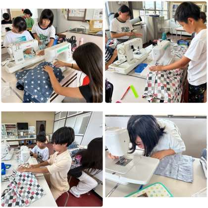 家庭科では、エコバッグを作っています。一年ぶりにミシンを使っています。始めは、久しぶりで苦戦している様子でしたが、徐々に勘を取り戻し、スムーズに縫えるようになって来ました。