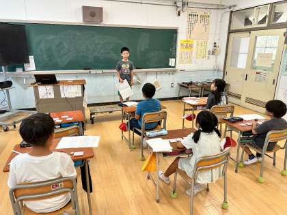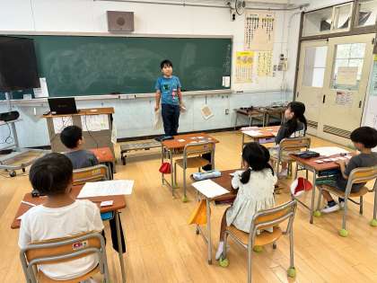 『話そう、二年生のわたし』の単元で、みんなに発表している様子です。