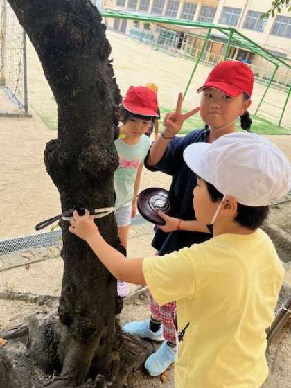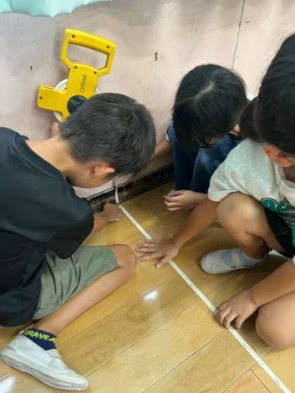 算数の学習では、巻き尺を使って、今までよりも長いものの長さを測ることに挑戦しました。