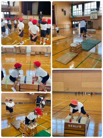 今日の体育科では、外部から先生をお招きして、跳び箱について教えていただきました。