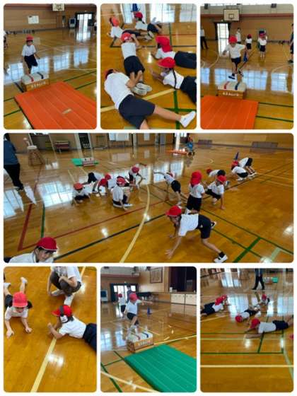 今日の体育科の時間も前回に引き続き跳び箱あそびをしました。