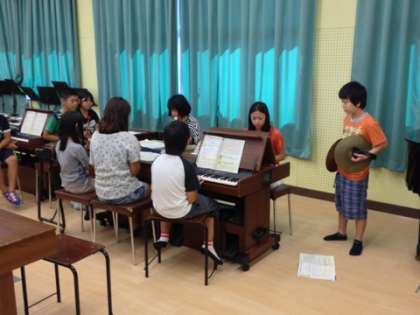 グループに分かれて合奏の練習をしています。オルガン・シンバル・リコーダーなどの担当を分けて、音を合わせていきます。今日は2回目の発表をしました。どのグループも前回より音が合ってきて、上手に演奏していました。