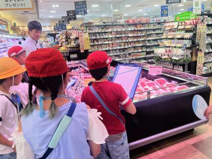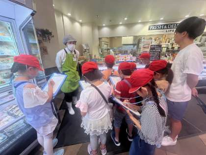 学校から歩いて10分ほどのところにあるスーパーマーケットに、社会科見学で伺いました。