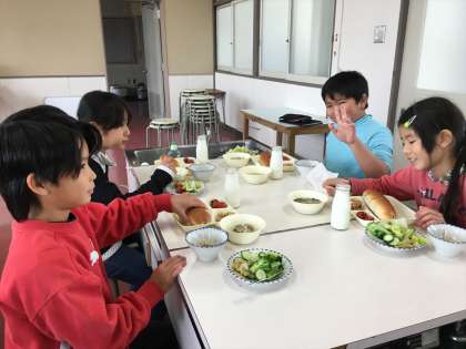 給食と一緒に食べたのですが、すごい野菜のボリュームに、みんな満腹になりました。