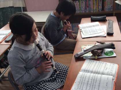 友達同士で声かけし、励ましあいながら頑張っている様子も見られ、友達が演奏している時もしっかりと聞く事ができていました。