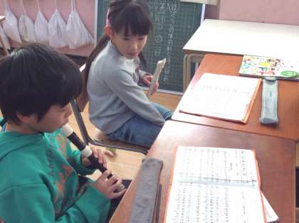 今日、3時間目の音楽の時間に「茶色の小びん」のリコーダーテストをしました。