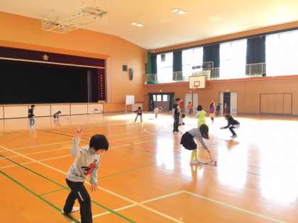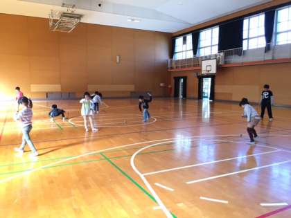 今日は広い講堂で練習しました。多目的室と違い、広々練習できるのでとても楽しそうでした。