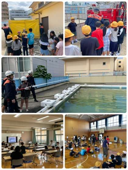 2、3時間目は、消防署の方や区役所の方たちと一緒に体験型の防災学習をしました。