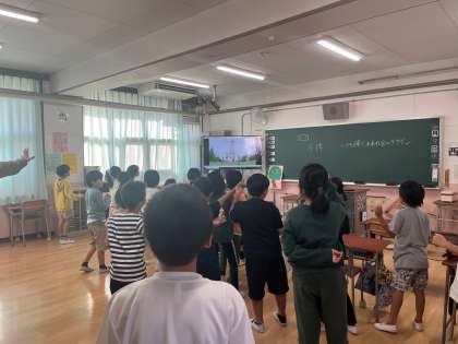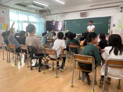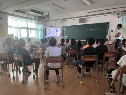 今日の6時間目は、3・4年生合同で、「万博」について学びました。