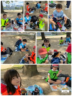 低学年、ただ今お弁当中!みんなたくさん体験をし、お腹ぺこぺこ。美味しい!と食べています。