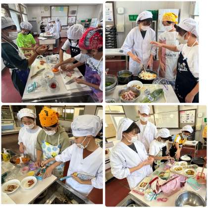 班ごとに彩りよく美味しそうに作ることができました。「少しかたいなぁー」「おいし〜」など、良かったところだけでなく、失敗したところもあったようです。次作る時は、もっと美味しくできそうですね!