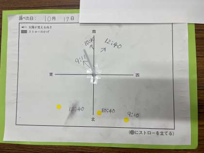 ストローの影の向きだけではなく、まわりの建物の影の向きも変わっていることに気がついた子どももいました。