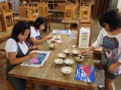 今日は立体作品のニス塗を行いました。最後の仕上げにあたるニス塗。みんな丁寧に塗っていました。あとは、乾くのを待つばかり。完成が楽しみです!