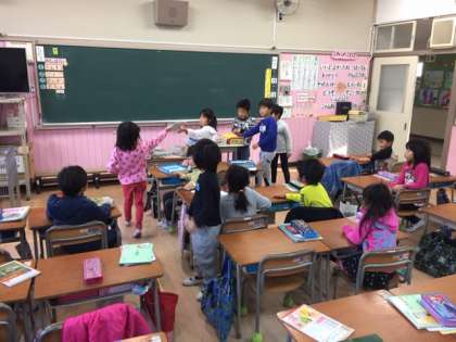 1時間目が始まる前のことです。教室に行ってみると、前に何人か出て子どもたちだけで何かやっています。そっとのぞいて見ていると、「連絡帳出していない人?」「漢字ノート出していない人?」と言っています。なんと、自分たちで提出物のチェックをしてくれていたのです。こちらは一度もやるように言っていません。自分たちでできることを考えて、協力し合っている姿に感動しました。すごい1年生です。朝から心があったかくなりました。