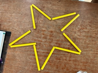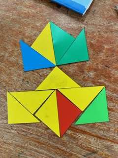 算数科の学習で、色板や棒を使って様々な形をつくる活動をしました。ずらしたり、まわしたり、裏返したりして、かたちづくりを楽しんでいました。