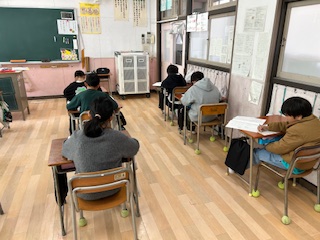 国語は初めに聞き取り問題があり、メモをとりながら問題を解く様子が見られました。