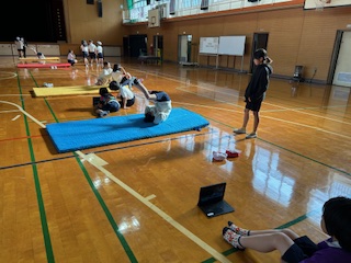 今日は、開脚後転の練習をしました。手のつき方や姿勢に気をつけて練習をしていました。