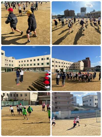 運動能力向上サポート事業として、2時間目に、1〜4年生を対象としたサッカー教室が行われました。