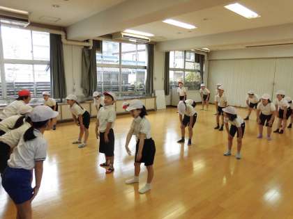 器械運動系で、体操から始まりストレッチ、腹筋を鍛える運動や腕、足の筋肉を使う運動などをしました。外で走ったり、ボールを使ったりするのとは違い筋肉を意識するので、