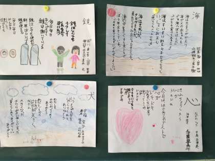 今日の国語の授業では、各グループで作成した詩を読み方にも工夫をしながら発表しました。