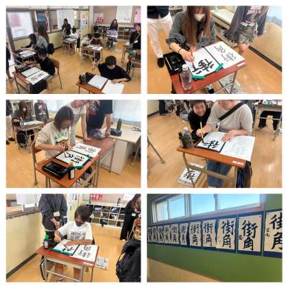 子どもたちは、保護者のみなさんが書く習字を見て、「うますぎー!!!」とテンションがあがっていました。しっかり廊下に掲示させていただいておりますので、また見に来てください!