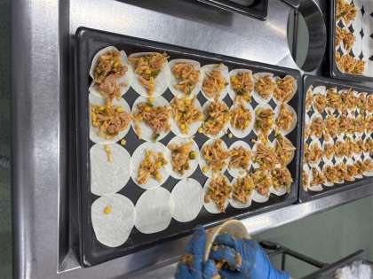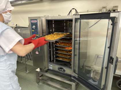 5月12日(月)の献立は、豚肉と野菜のカレースープ煮、変わりピザ、ミックスフルーツ、レーズンパン、牛乳でした。5・6年生には給食室で1枚ずつ焼き上げる様子を動画で紹介し、おうちでも作れるレシピを紹介しました。小腹がすいた時、夕食の+1品に、おうちの人と一緒に作ってみてください!