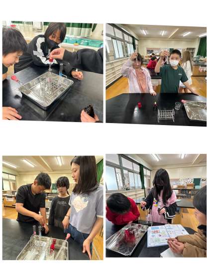 今日は、だ液の働きについて実験をしました。でんぷんは、だ液によって何か別のものに変化したことがわかりました。