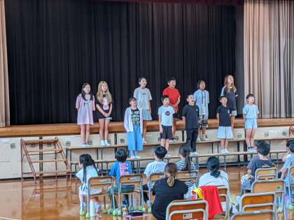 1年から5年までの学級目標を振り返り、6年生としての気持ちを学級歌『青いベンチ』にのせて歌いました。