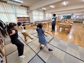 今日は国語科の時間に図書ボランティアさんに本を読んでもらいました。子どもたちも興味津々。みんなお話の世界にひきこまれていました。最後はみんなでパンダたいそうをしました。