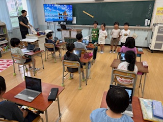 学校たんけんを計画してくれた2年生にありがとうを伝えに行きました。2年生とは体育や給食で一緒に過ごしていますが、改めてお礼を伝えてちょっと緊張ぎみの1年生でした。2年生いつもありがとう。これからもよろしくね。