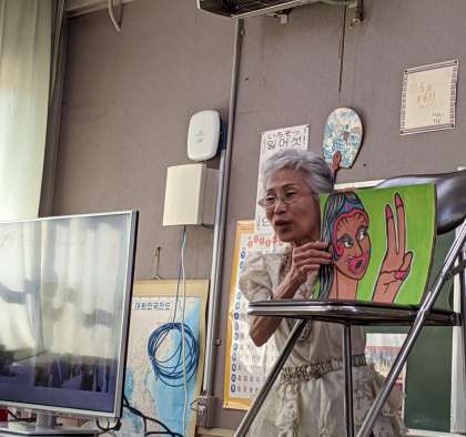 ピヤラット先生に、タイの紙芝居を見せてもらいました。『貝太郎』のお話し。心が大切だよ。