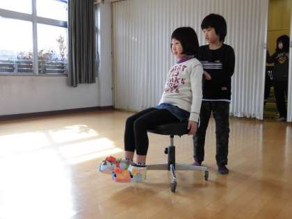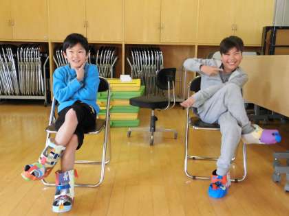 作品展でもご覧に頂いた、「おしゃれなくつ」をはいて多目的室でファッションショーをしました。歩くと壊れる危険性があるので、椅子に座ってのショーです。2年生の時にも、ファッションショーをしている子どもたちにとって、すごく楽しみだったようで、とても盛り上がりました!音楽に合わせて、手拍子をしたり、名前をコールしたり、本当に楽しそうでした。