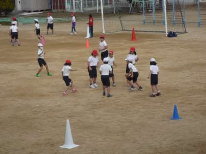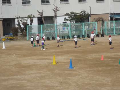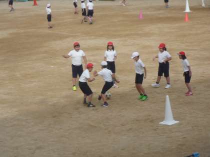 サッカーが好きな子が多いので、みんな楽しく取り組んでいます。パスやドリブルの練習を中心にやっているので、みんなボールさばきが上手になってきたようでした。ラインサッカーはシュートはコーンの高さより下に打つので、思いっきり蹴ることは難しいですが、転がすシュートを上手に打てていました。