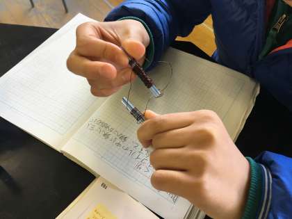 一人一人が電磁石を作り、クリップをくっつけて遊びました。