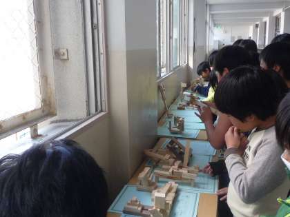 放課後、廊下を通りがかった2年生が、「めっちゃすごいやん!」と言って作品を見ていったので、3年生はご満悦!