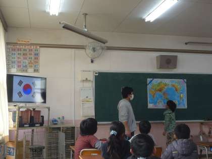 国旗を見て、国を当てるところから始まり、世界地図で場所を確認しました。その後、国旗ってどんなときに揚げられるか、を考えました。