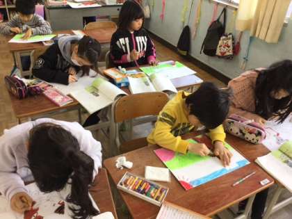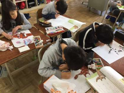 学習の中で読み取ったことを想像して絵を描いたり、挿絵を参考にしたりしているので、教科書に載っているものとはまた一味違った作品になりそうです。