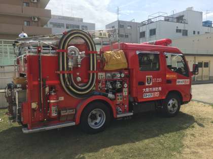 消防署の協力を得て、職員室では通報訓練と消化の初期対応まで行いました。