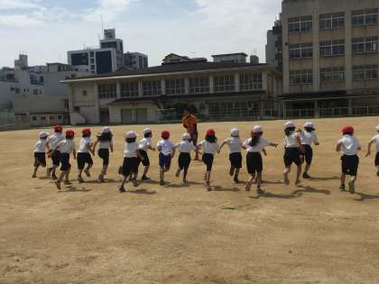 今日の体育では、運動場で、元気いっぱい走り回りました。