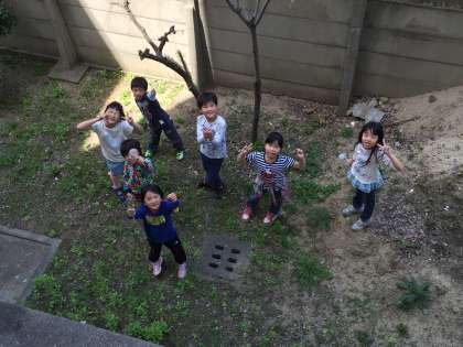子どもたちは一人ひとり虫メガネをもち、一生懸命にたんぽぽの観察をしていました。