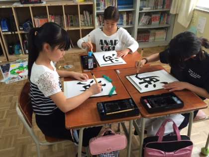 6年生になって初めての習字です。画数が多くて難しそうにみえましたが、幅と高さに気をつけて丁寧に書けました。