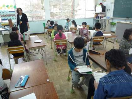 担当を最初の日は、たにぐち先生が緊張、子どもたちもその緊張が伝わって緊張・・でしたが、今日で3時間目。
