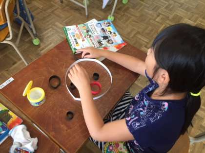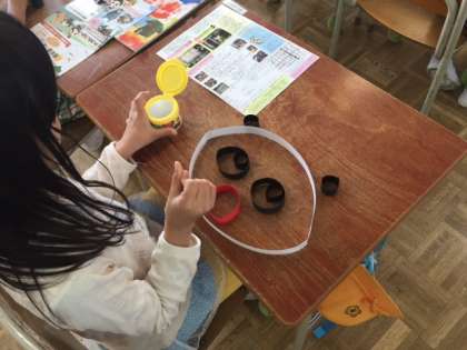 細長い紙を丸めて、輪をたくさん作り、それを組み合わせて様々な形を作っていきます。
