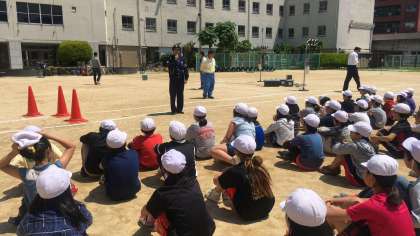 警察署の人に来て頂き、自転車を運転するときのルールや安全な乗り方について指導してもらいました。