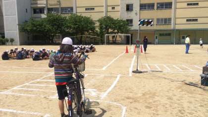 最後には、実際に自転車に乗って、横断歩道などのコースを運転します。