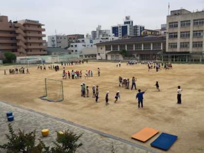 今週は、なわとび週間です。2時間目が終わると全校児童がとび縄を持って運動場に集まります。
