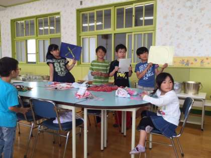 給食後、クイズをしました。6年生は、1年生でも参加でき、みんなで楽しめることということで考えました。「徳富先生のしんちょうは?」「生江小学校の人数は?」など○・×形式で行いました。一問ごとに大きな歓声が上がりました。